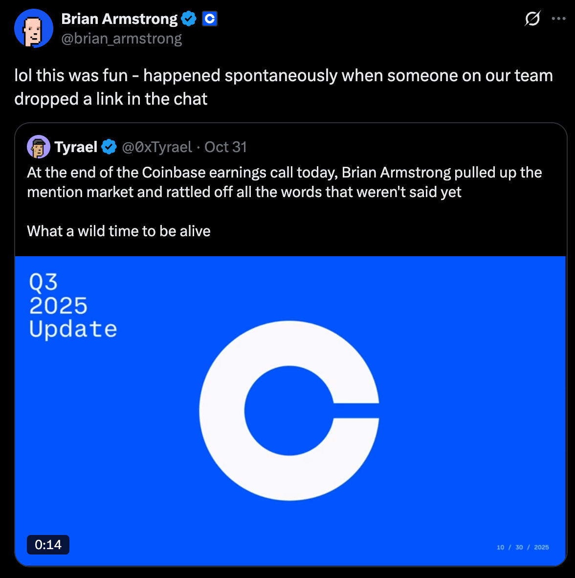 והנה נפתח הימור כזה השבוע, לגבי הדיווח הרבעוני של חברת Coinbase: האם המנכ”ל, בריאן ארמסטרונג, יגיד מילים כמו “ביטקוין”, “חורף הקריפטו” וכו’.